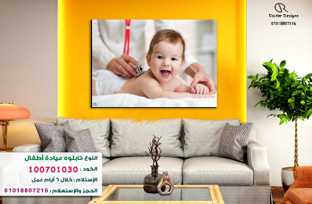تابلوه يصور لحظة دافئة ومبهجة لطفل رضيع يضحك أثناء فحصه من قبل طبيب، مما يضفي شعوراً بالراحة والأمان. الألوان الزاهية والإضاءة المحيطة بالتابلوه تبرز جمال الصورة وتجعلها نقطة محورية جذابة في الغرفة. هذا العمل الفني مثالي لعيادات الأطفال أو أي مكان يهدف إلى بث البهجة والطمأنينة.