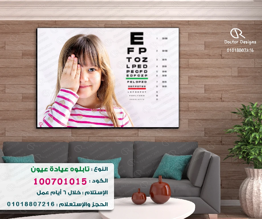 تابلوه يصور طفلة مبتسمة تغطي إحدى عينيها، وخلفها يظهر مخطط فحص البصر (Snellen chart) بوضوح. الصورة تعبر عن أهمية الفحص الدوري للعيون للأطفال، وتوحي بالرعاية الصحية والوقاية. الألوان مشرقة وتبعث على التفاؤل، مما يجعلها مناسبة لعيادات العيون أو الأماكن التي يرتادها الأطفال.