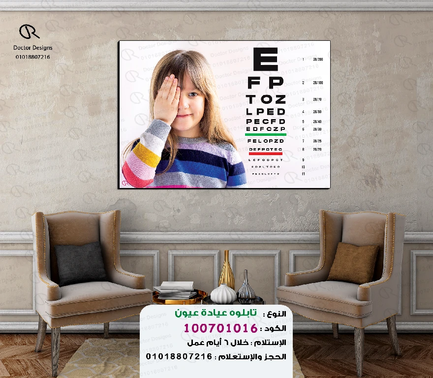 تابلوه يصور طفلة مبتسمة تغطي إحدى عينيها، وخلفها يظهر مخطط فحص البصر بوضوح. الصورة تعبر عن أهمية الفحص الدوري للعيون للأطفال، وتوحي بالرعاية الصحية والوقاية. الألوان مشرقة وتبعث على التفاؤل، مما يجعلها مناسبة لعيادات العيون أو الأماكن التي يرتادها الأطفال.