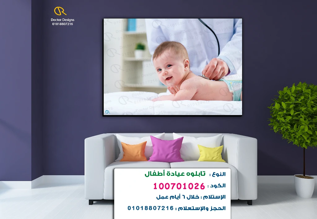 تابلوه لعيادة أطفال، يظهر فيه طفل رضيع مبتسم مستلقيًا على بطنه بينما يقوم طبيب بفحصه باستخدام سماعة طبية على ظهره. يعطي الطفل تعابير وجه سعيدة ومطمئنة، مما يضفي لمسة من البراءة والراحة على الصورة. هذا التابلوه يهدف إلى إضفاء جو من الثقة والهدوء في عيادات الأطفال، مما يجعله إضافة مثالية لأي مساحة مخصصة للصغار.