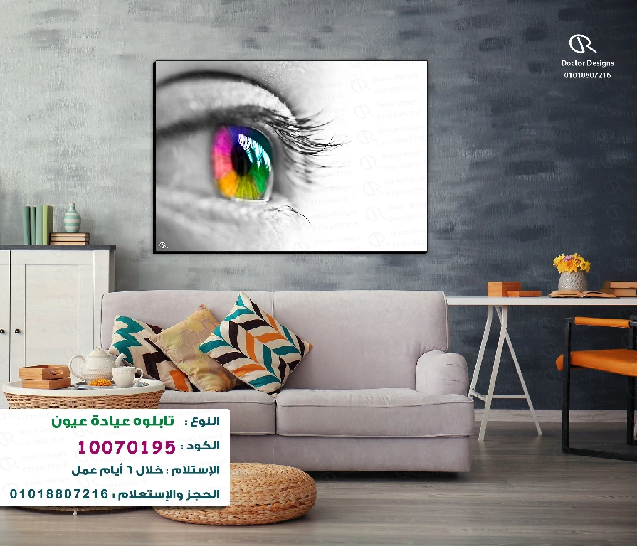 تابلوه يقدم لقطة مقربة ومذهلة لعين بشرية، تظهر القزحية بألوان قوس قزح زاهية ومميزة، بينما يظهر باقي الوجه بالأبيض والأسود. هذا التباين اللوني يخلق تأثيرًا فنيًا قويًا ويبرز جمال العين وتفاصيلها. يعكس التابلوه فكرة الرؤية بالألوان والإبداع، مما يجعله إضافة فريدة لأي عيادة عيون تسعى لتقديم لمسة فنية عصرية ومميزة.