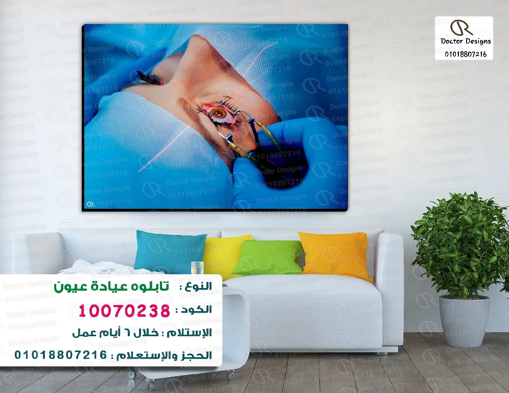 تابلوه يصور عملية جراحية للعين، حيث تظهر يد الجراح وهي تستخدم أدوات دقيقة على العين، مع وجود شعاع ليزر. يعكس التابلوه الدقة والتقنية العالية في جراحات العيون، ويوحي بالخبرة والاحترافية في هذا المجال. الألوان زاهية وواقعية، مما يضفي على التابلوه طابعًا طبيًا وعلميًا.