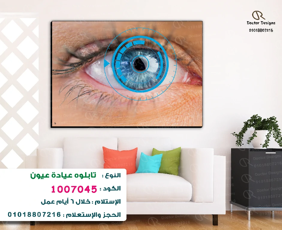 تابلوه يُقدم عينًا بشرية زرقاء آسرة، محاطة بتصميم رقمي أزرق يرمز إلى التكنولوجيا والتقدم في مجال العيون. تبرز الصورة دقة التفاصيل في القزحية والأوعية الدموية الدقيقة، مما يعكس اهتمامًا بالتفاصيل التشريحية والفنية. هذا العمل الفني يجمع بين الجمال البصري والمفهوم التقني، مما يجعله مثاليًا لعيادات العيون التي تسعى لعرض رؤية حديثة ومبتكرة للعناية بالعين.