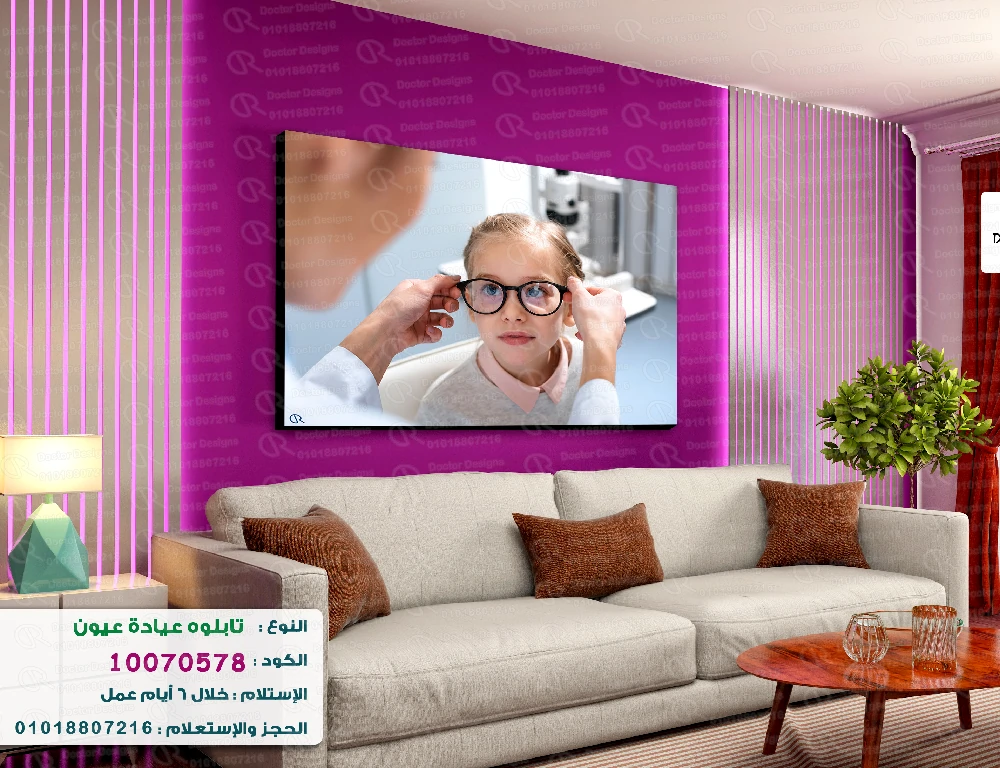 تابلوه يصور طبيب عيون يقوم بتركيب نظارة طبية لطفلة صغيرة، مما يعكس الرعاية الطبية المتخصصة والاهتمام بصحة العيون. الصورة توحي بالثقة والاحترافية في مجال طب العيون، وتبرز أهمية الفحص الدوري وتصحيح البصر. الألوان هادئة وواقعية، مما يضفي على التابلوه طابعًا طبيًا وإنسانيًا.