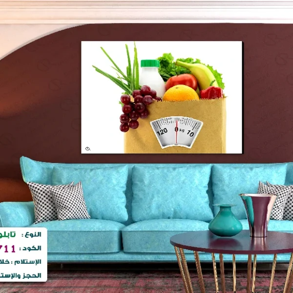 تابلوه فني يعكس مفهوم التوازن والانسجام، بألوان هادئة تبعث الطمأنينة في المكان. مثالي لتعزيز أجواء الراحة النفسية داخل عيادات التغذية.