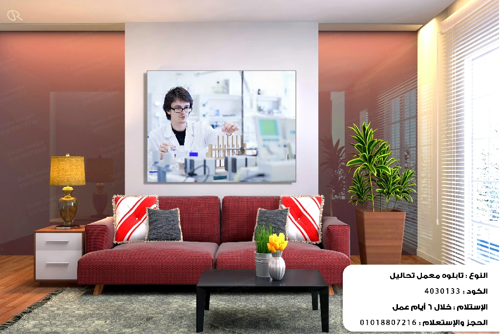 أضف لمسة من الهدوء والاحترافية إلى معمل التحاليل الخاص بك مع هذا التابلوه المتقن. بألوانه الرصينة وتصميمه الذي يبعث على التركيز، يساعد هذا التابلوه على خلق أجواء هادئة ومركزة، وهو ما يعكس الدقة والاحترافية المطلوبة في عمل المختبر. إنه الخيار الأمثل لتعزيز بيئة عمل تبعث على الثقة والاطمئنان لدى الزوار والفنيين