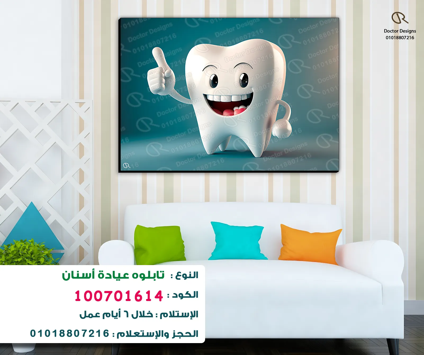 تابلوه يُظهر تصميمًا توضيحيًا لسن بشري بألوان دافئة ومتدرجة من البرتقالي والأحمر، مع تقسيمات جانبية تُشير إلى أجزاء السن الداخلية. يعكس هذا التصميم الفني اهتمامًا بالأسنان بطريقة جذابة ومبسطة، مما يجعله مناسبًا لعيادات الأسنان