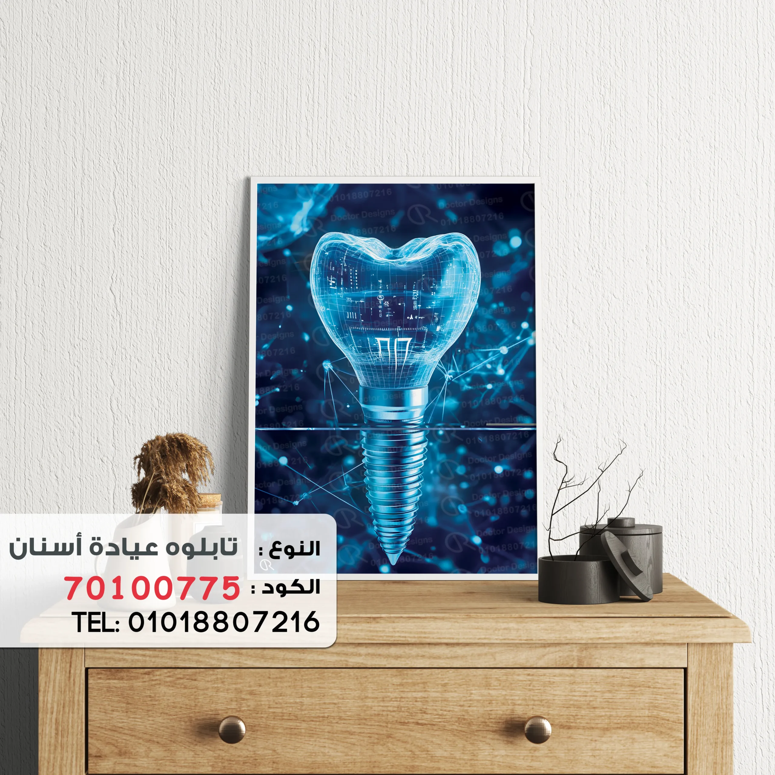 تابلوه يُظهر تصميمًا توضيحيًا لسن بشري بألوان دافئة ومتدرجة من البرتقالي والأحمر، مع تقسيمات جانبية تُشير إلى أجزاء السن الداخلية. يعكس هذا التصميم الفني اهتمامًا بالأسنان بطريقة جذابة ومبسطة، مما يجعله مناسبًا لعيادات الأسنان